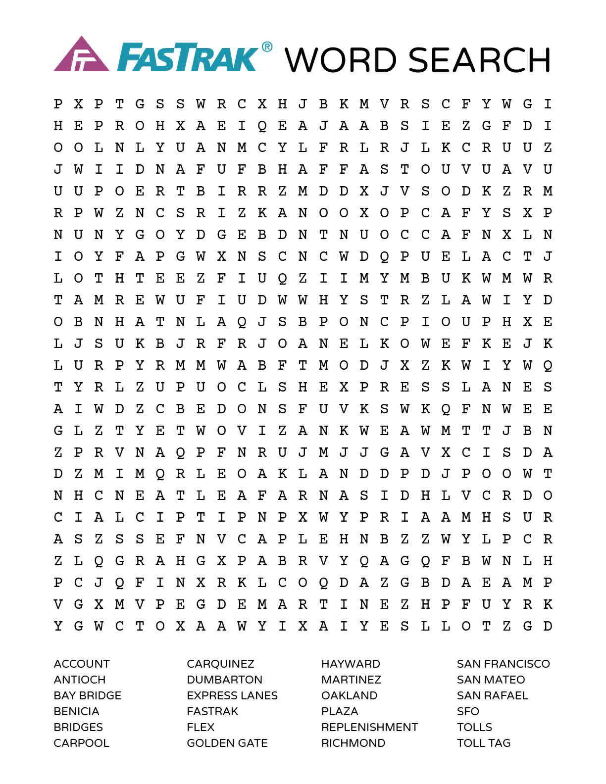 Yes. A frickin' word search puzzle. They, a quasi-governmental agency, that we have no choice about using, is sitting around spending the money they charge in bridge tolls, spending that money to amuse themsaelves making word search puzzles.
