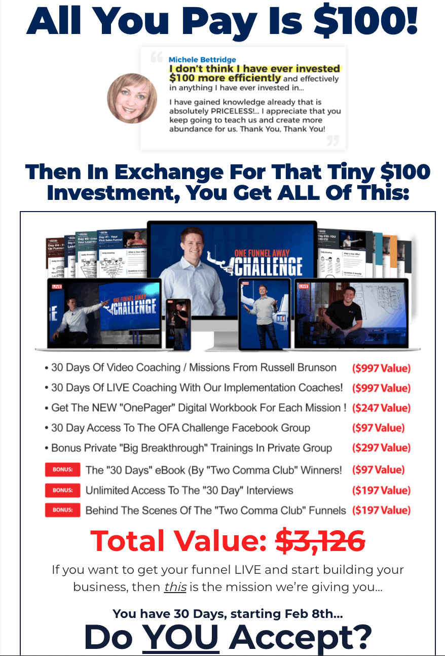 You already saw my list of special free bonuses when you signup. Let me recap from Russell Brunson, what he is promising you, if you take this class with me: